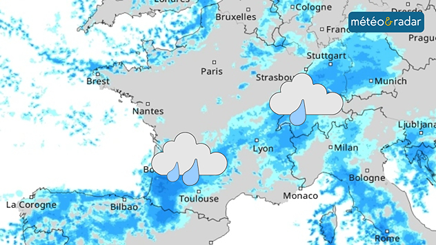 Les précipitations resteront fréquentes en début de semaine si vous habitez entre le Sud-Ouest et le Centre-Est, augurant des cumuls localement importants en 48 heures, de l'ordre de 20 à 50 mm, localement davantage.