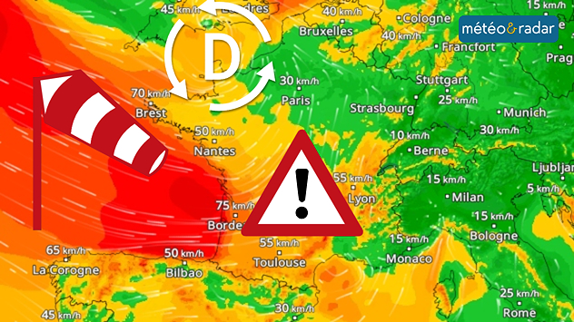 Une nouvelle zone pluvieuse s'invitera avant la fin d'après-midi par l'Ouest avec davantage de pluie et un renforcement du vent. Vent qui soufflera bien fort en cours de nuit suivante entre la côte atlantique et le Sud-Ouest. Dans un contexte de fortes marées, des submersions sont redoutées sur le littoral.