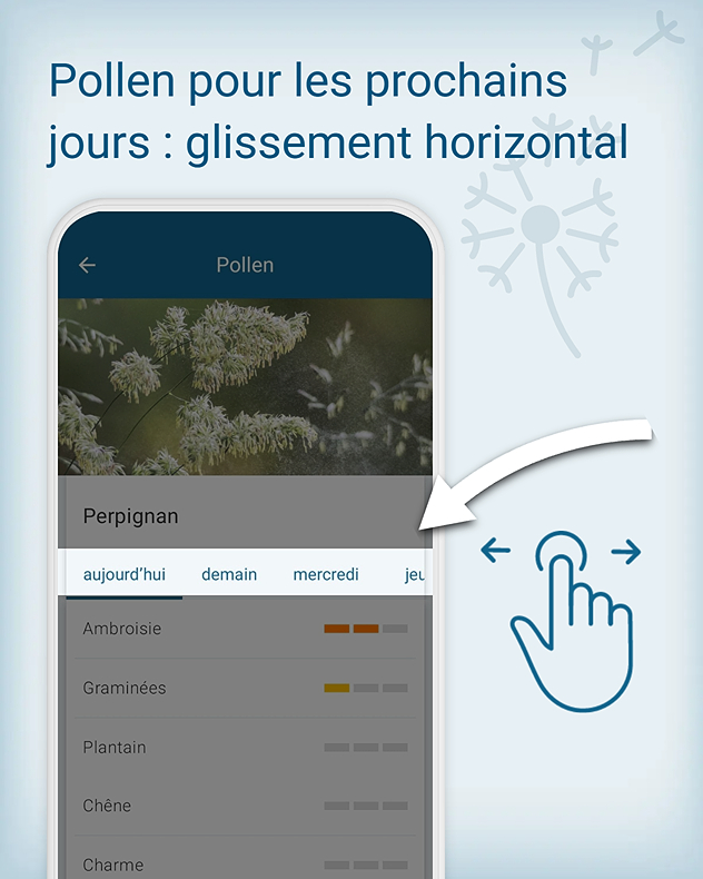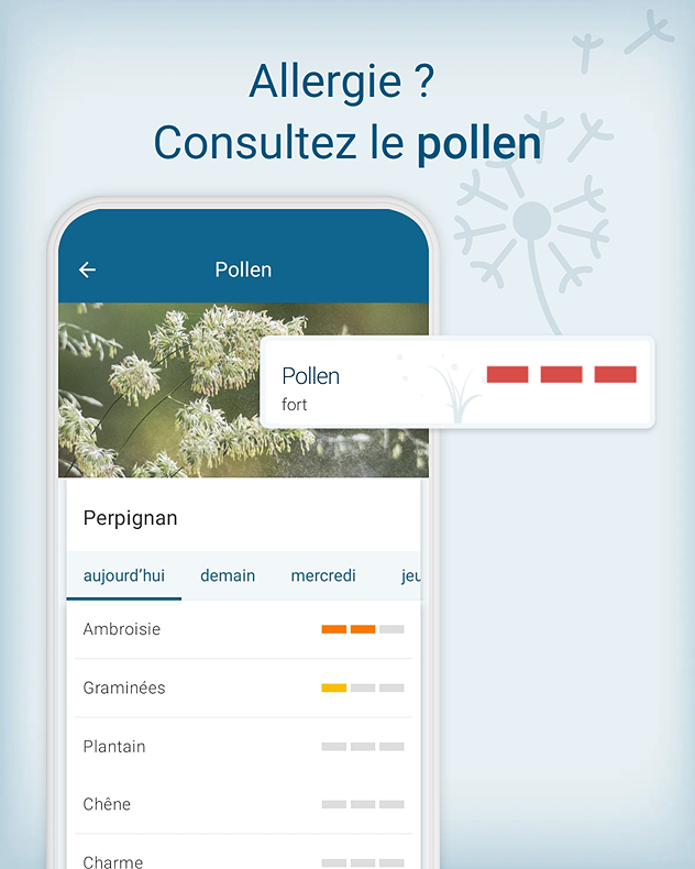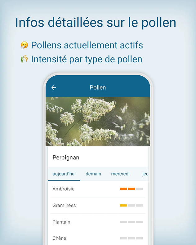 Au cours de la semaine à venir, le peuplier, le saule et l'orme continueront à produire beaucoup de pollen, puis la floraison diminuera progressivement. Le bouleau et le hêtre atteindront alors leur pic de pollinisation. Suivez l'actualité du pollen sur notre application.
