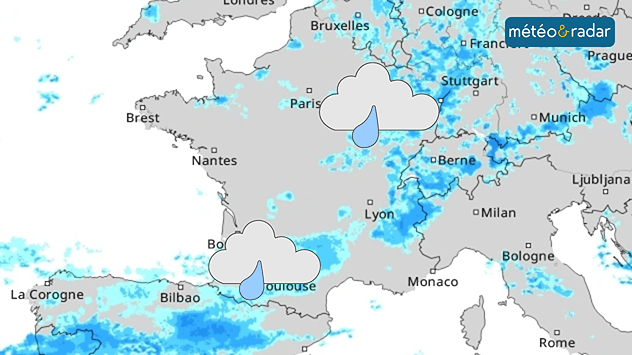 Ladite perturbation se décalera vers le Massif Central et les frontières de l'Est en cours d'après-midi, toujours accompagnée d'humidité. Quelques averses pourront se produire près de la Manche et en Corse.