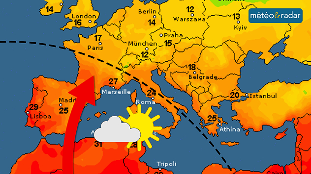 Grâce au bon ensoleillement annoncé et à la remontée d'une masse d'air doux par le sud de l'Europe, les températures seront orientées à la hausse et pourront approcher ou dépasser la barre des 25 degrés si vous habitez entre le Sud-Ouest et la Méditerranée.