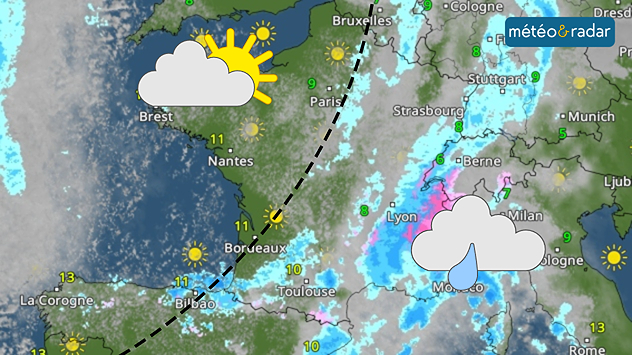 Les conditions météo s'annoncent vraiment très hétérogènes selon les régions au cours des heures à venir avec globalement une France coupée en deux.
