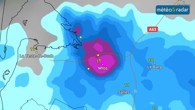 Notre carte radar météo montre cellule orageuse à l'origine de la tornade qui a frappé Mios.