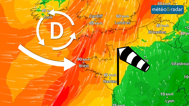 Dès la nuit, un coup de vent balayera d’abord la Bretagne, puis la Normandie lundi matin, avant d’atteindre l’extrême nord des Hauts-de-France. Les rafales atteindront 80 à 100 km/h sur les littoraux, contre 50 à 70 km/h dans l’intérieur.