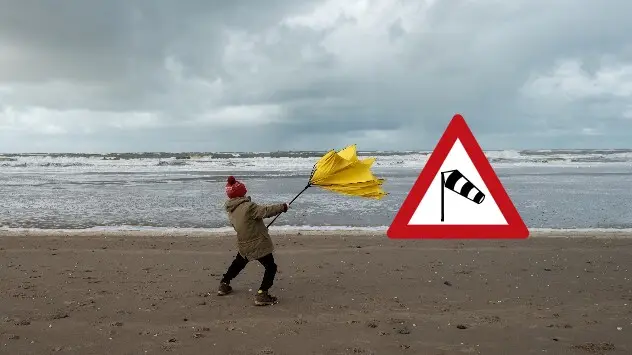 Des personnes pataugent dans une rue inondée, à côté d'une carte météo montrant un cyclone au-dessus du Sri Lanka. Représentation des conséquences de la tempête et des champs de vent actuels.