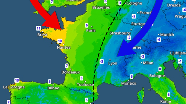 Destruction causée par une tornade à côté d’une carte météo avec des marquages près de Portimão.