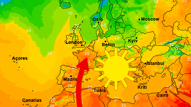 La carte météo montre des vents violents au-dessus de la Méditerranée et de l'Europe du Sud. Les zones rouges indiquent des vitesses de vent particulièrement élevées.
