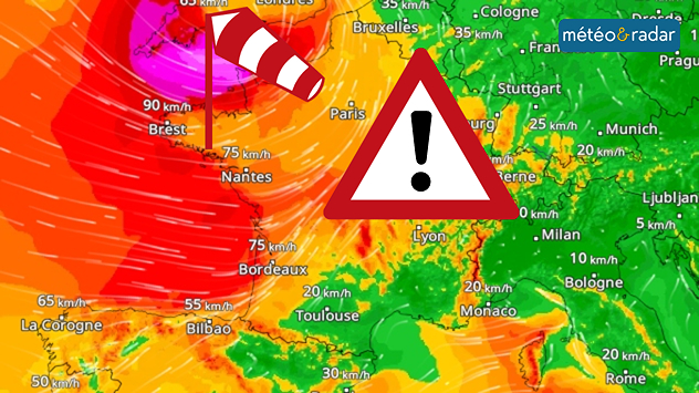 Les côtes de la Manche sont bien impactées et plus particulièrement la côte normande avec des rafales jusqu'à 160km/h (littoral ouest du département de la Manche). Dans les terres au nord de la Loire, des rafales jusqu'à 110km/h sont probables.