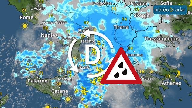 Le sud de l’Italie vient d’être placé en alerte maximale ce 16 octobre pour orages violents. Les côtes grecques et l’Albanie sont également concernées, avec 50 à 100 mm de pluie attendus en 24 heures, localement bien plus.