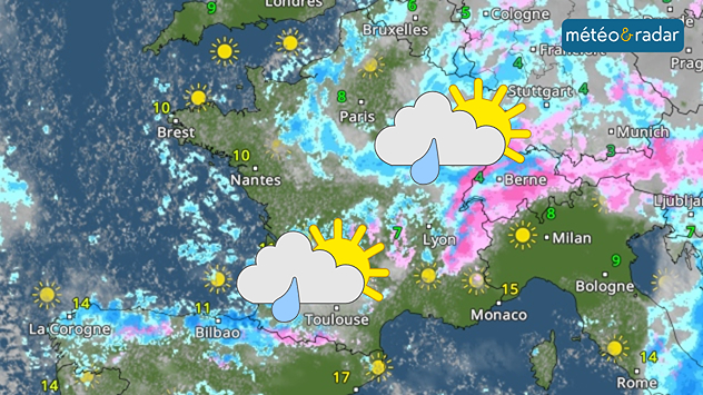 C'est également sur ces mêmes contrées que le risque de voir une averse ou de la pluie est le plus présent au cours des heures qui viennent. Notez que la limite pluie-neige sera à assez basse altitude en montagne, souvent proche de 1000 mètres, parfois un peu moins.