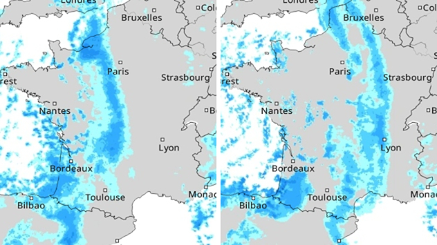 Destruction causée par une tornade à côté d’une carte météo avec des marquages près de Portimão.
