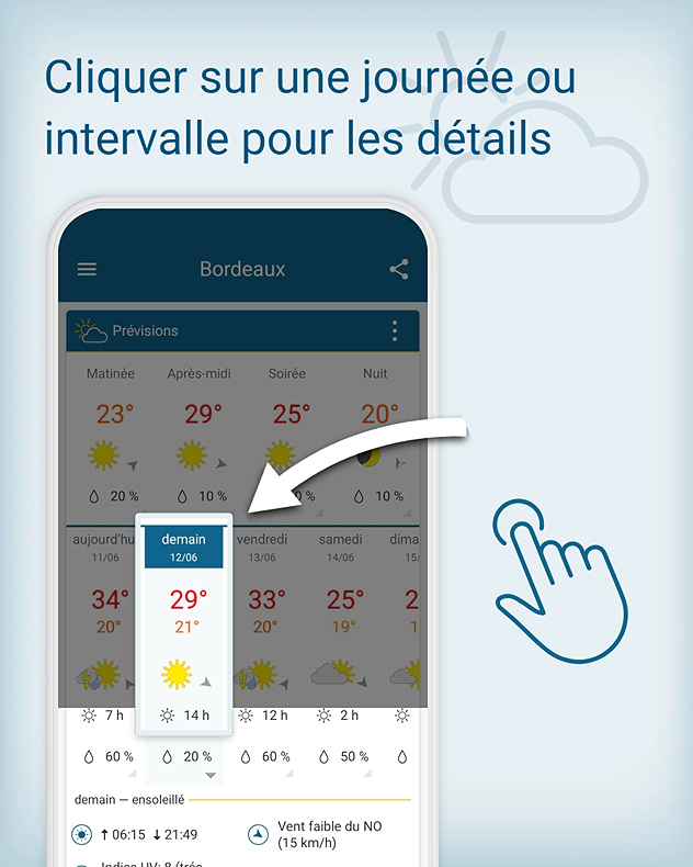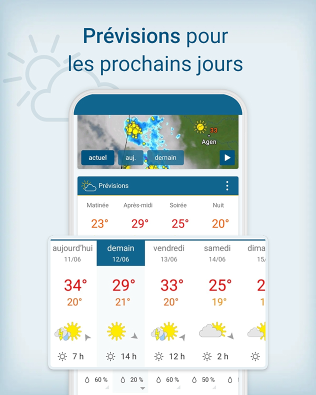 Voici comment obtenir les prévisions pour aujourd'hui et les prochains jours :