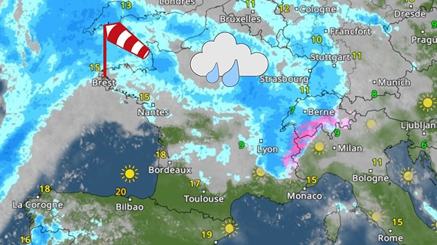 Aujourd'hui : nuages denses et pluie par intermittence. Au cours des prochaines heures, la température se maintient autour de 10 degrés.