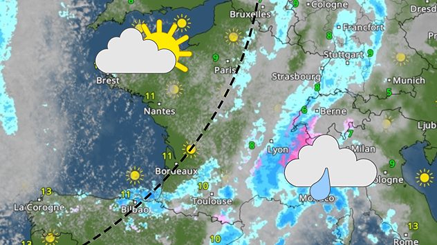 Aujourd'hui : le soleil domine toute la journée. La température actuelle est de 7 degrés et elle augmente au cours de la journée jusqu’à 14 degrés.